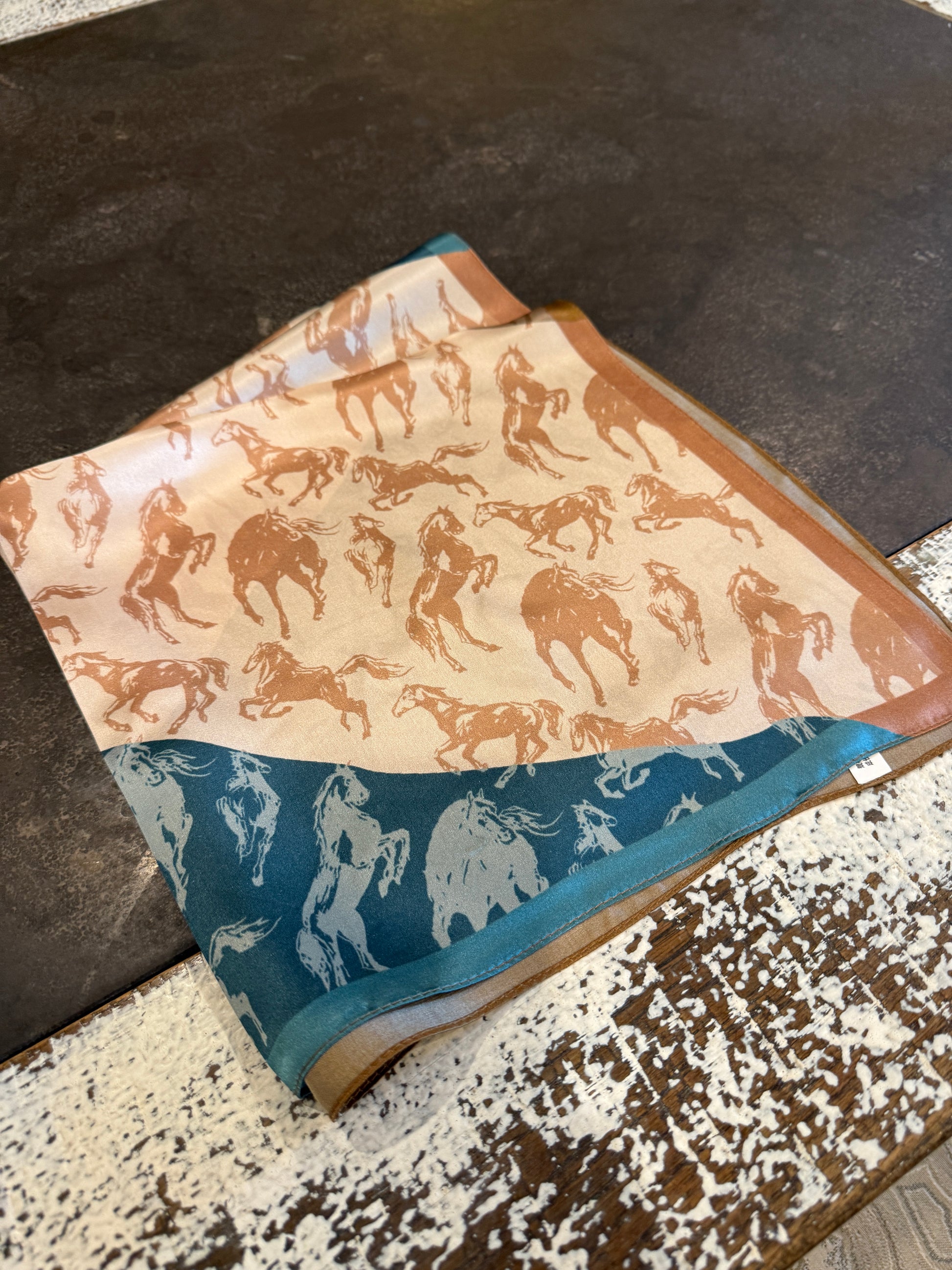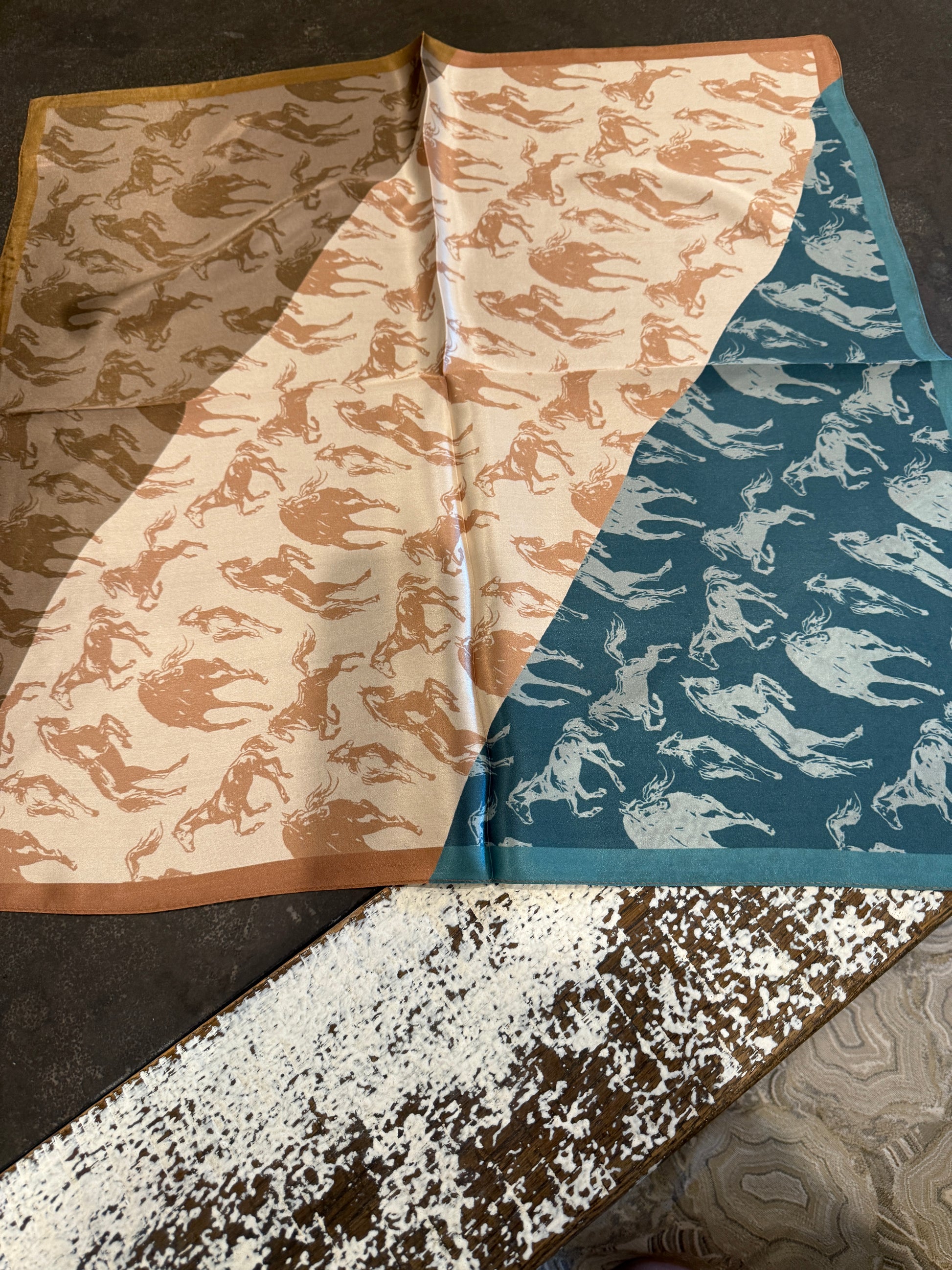 Perfect for all seasons, this versatile piece can be styled around the neck, tied in your hair, or added to your handbag for a refined Western-inspired accent.